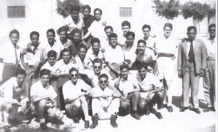 Plus bas : Jacques Beniaca, Georges Ameli, Piero Pegna, ? Pardo, Johnny Aboulafia, Jacques Della Riccia, Raymond Lallouche, Lucien Nahmias, Robert Harari, Selim Choukroun (surveilant), Roger Soussan